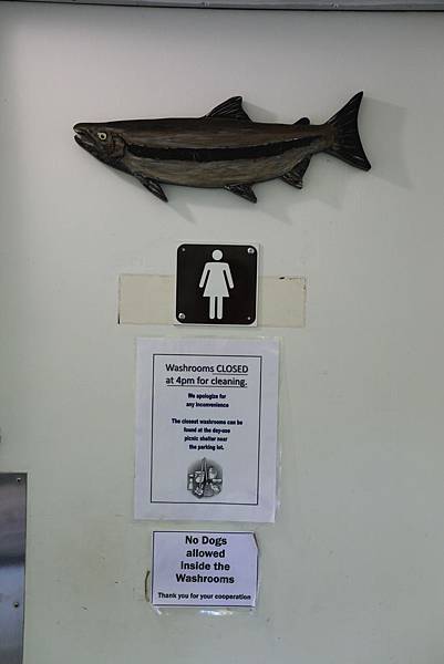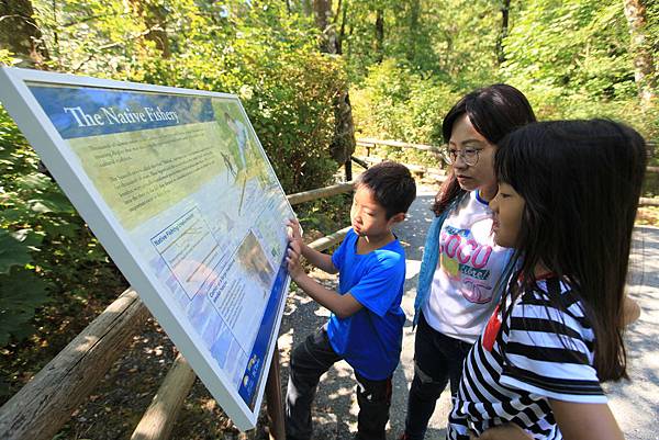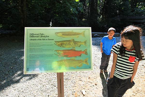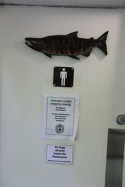 第12天早上先去營地附近的Goldstream Salmon Run Turn Off想像一下秋天時鮭魚洄游到這兒的景象。雖然這個季節看不到鮭魚,但還是可以藉由沿途的解說牌和Nature House裡的介紹來了解鮭魚的一生。